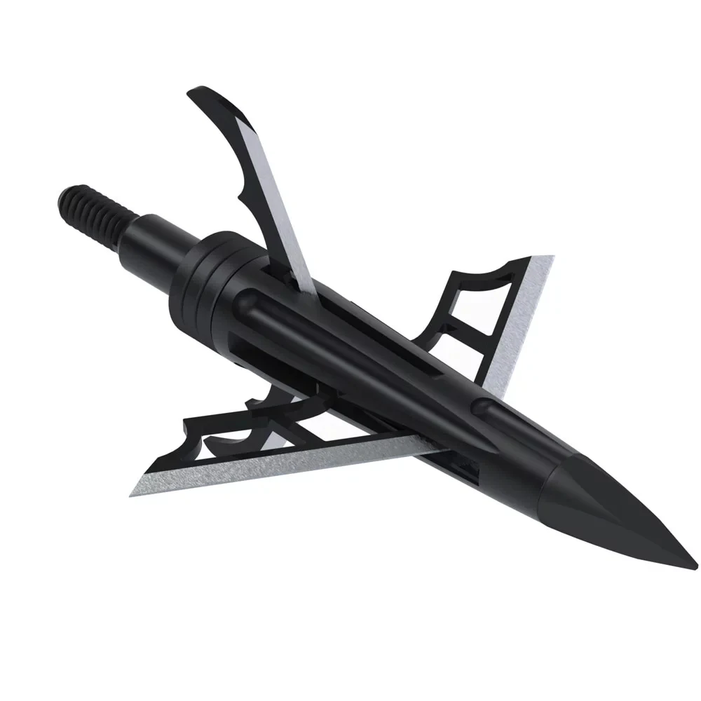 The DK4 represents the next level in broadhead development. This hybrid-mechanical broadhead features a pivoting main blade and two mechanical bleeder blades design for maximum penetration potential. Available in 100 and 125 grains. 1 3/4″ cutting diameter.