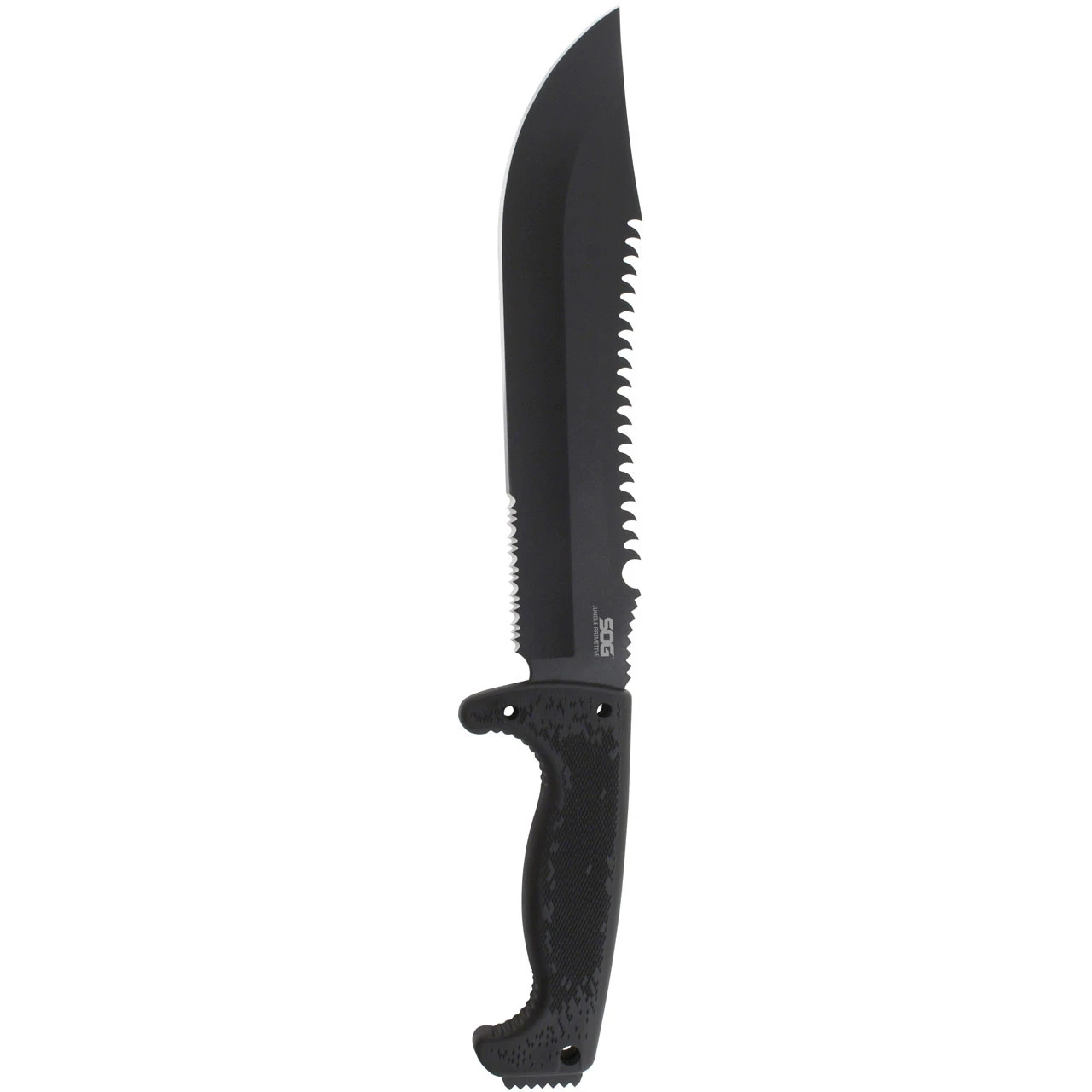 For the primitive in all of us. When the only thing that separates you from them is your equipment, it better be good. Using SOG’s Hardcased black coating, the Jungle Primitive is durable and comfortable with a molded Kraton handle that features Digi-Grip, a way to guarantee gripping power where you need it. One can instantly turn the Primitive into a small machete, limb saw, or hammer. Includes a Nylon sheath with utility pouch. Don’t be caught alone! Item F03TN-CP